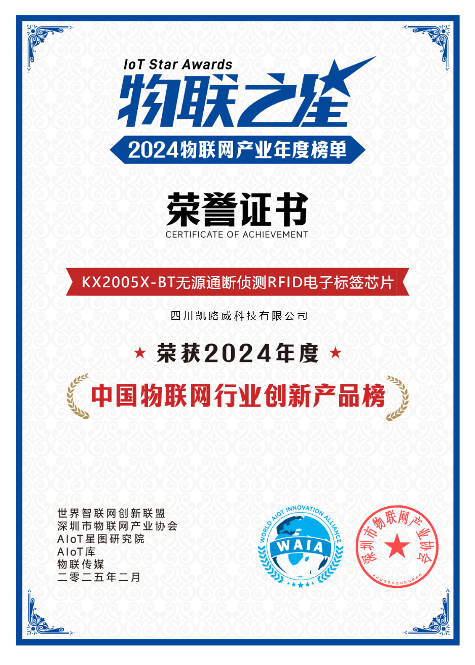 恭喜SG·亚洲胜游科技“KX2005X-BT无源通断侦测电子标签芯片”斩获“2024年度中国物联网行业创新产品榜”。
